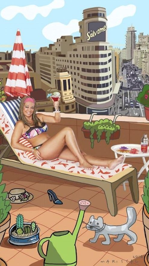 Belén Esteban: “Ella es la súper estrella, al menos así la veo yo. Está en su terraza en la Gran Vía, con guiño a ‘Sálvame’ incluido en uno de los edificios clásicos de esta calle”.