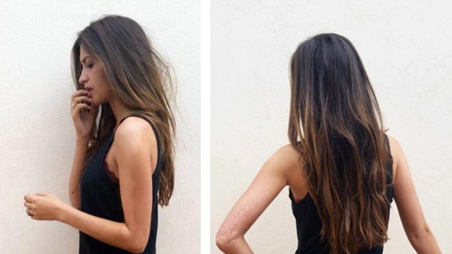 Así, comparte dos fotos en las que deja ver la pigmentación de su brazo izquierdo de perfil, y la gran cicatriz que tiene en la parte posterior de ese mismo brazo.