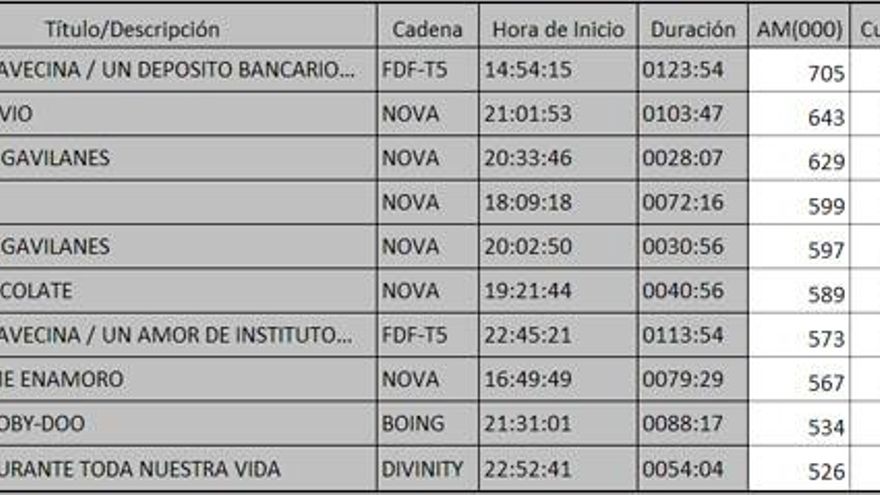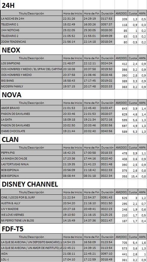Top 5 programas por cadenas