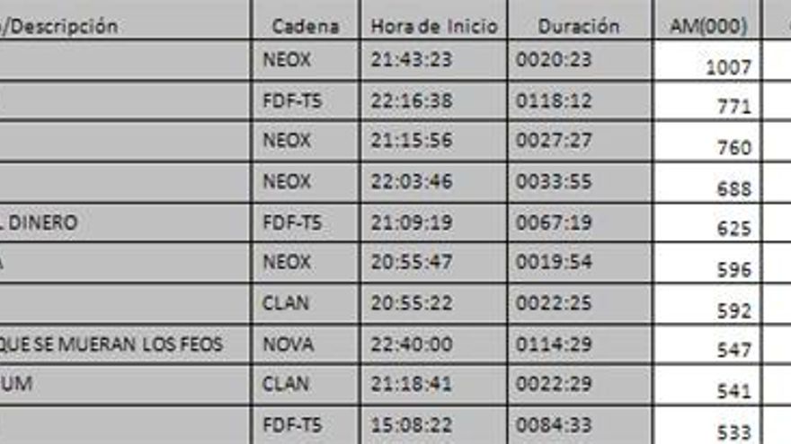 Los 10 programas más vistos del día en la TDT: