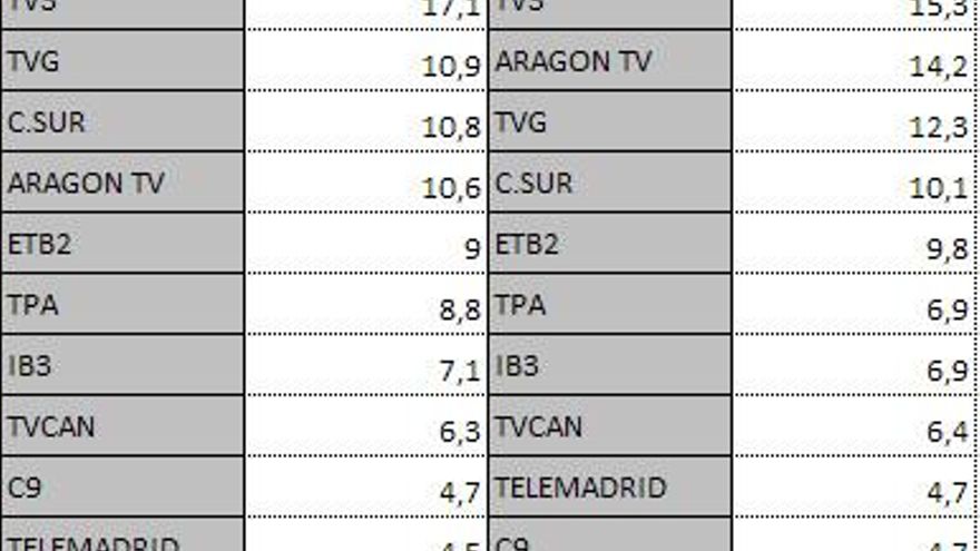 Audiencias autonómicas jueves 18 de octubre: