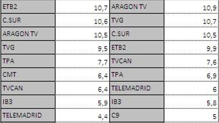 Audiencias autonómicas jueves 31 de mayo