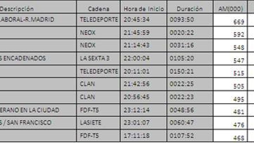Los 10 programas más vistos del día en TDT