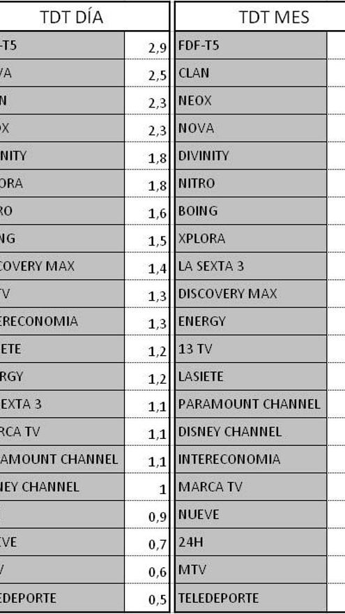 Audiencias TDT y Forta