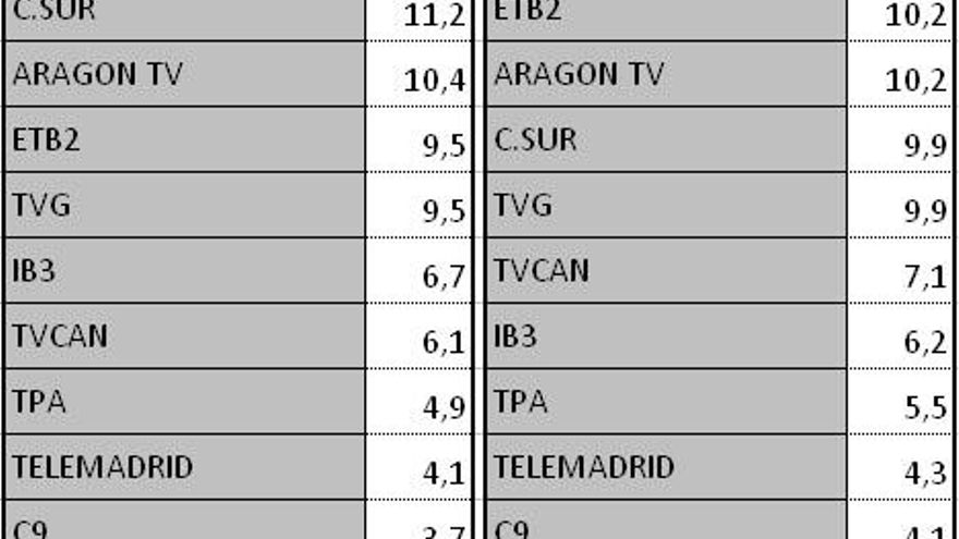 Audiencias autonómicas del miércoles