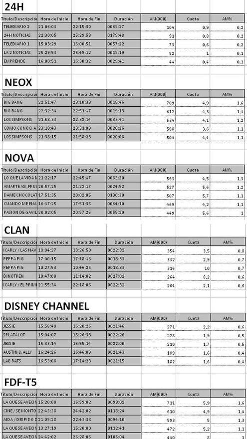 Audiencias TDT 28/08/14