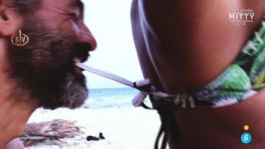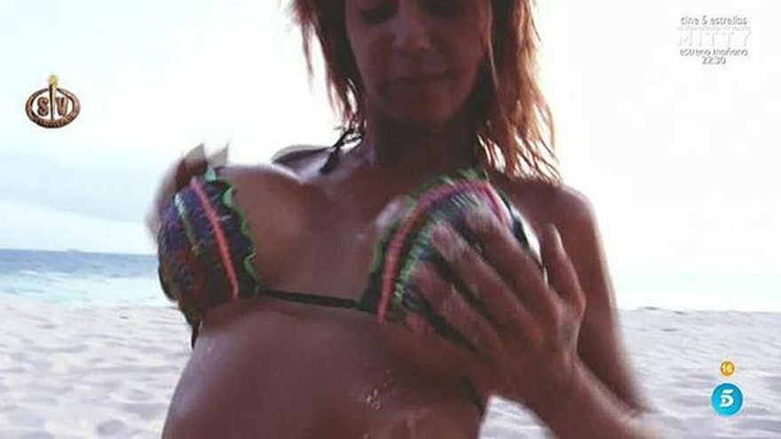 Steisy se fue despojando primero de la ropa que la cubría hasta quedarse en bikini, después jugaron con la crema, e incluso Paco llegó a morder la parte de abajo del bañador de su compañera. Al final, acabaron rebozándose por la arena entre risas, como puede ver AQUÍ.
