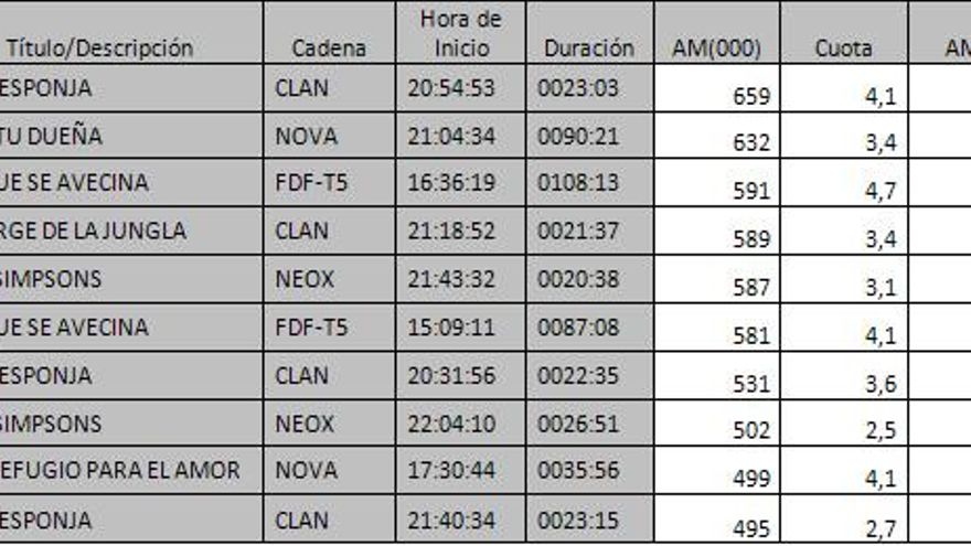 Los 10 programas más vistos del día en la TDT