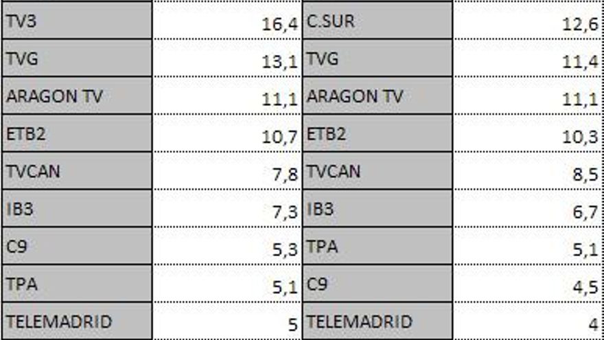 Audiencias autonómicas viernes 8 de febrero