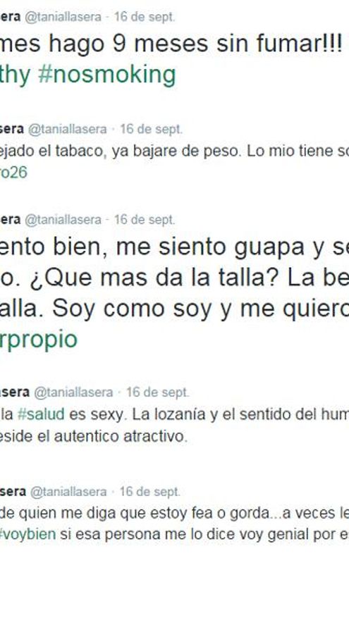 Llasera aclaró que “me siento bien, me siento guapa y sexy incluso. ¿Qué más da la talla? La belleza no es una talla. Soy como soy y me quiero”. “Para mí la salud es sexy. La lozanía y el sentido del humor es para mí donde reside el auténtico atractivo”. “Y depende quien me diga que estoy fea o gorda... A veces les miro y pienso: Voy bien si esa persona me lo dice voy genial por este camino”.