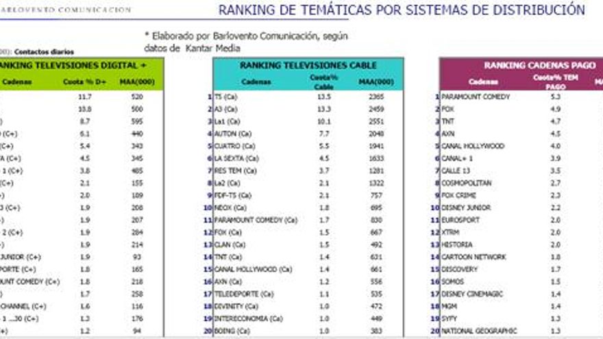 encabezado por primera vez por Paramount Comedy (0,3%), Fox (0,3%), TNT (0,3%), AXN