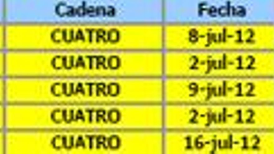 Cuatro (5,7%) baja 1,1 puntos este mes debido a los descensos en todos los targets, pero sobre todo en hombres, en jóvenes de 13 a 24 años y en mayores de 64 años; así como de lunes a viernes y en la franja de tarde. El cine encabeza el listado de emisiones más vistas de la cadena en julio con “Ice Age 2: el deshielo” en cabeza. Destacan también “Transporter”, “Dueños de la calle” y “Blitz”.