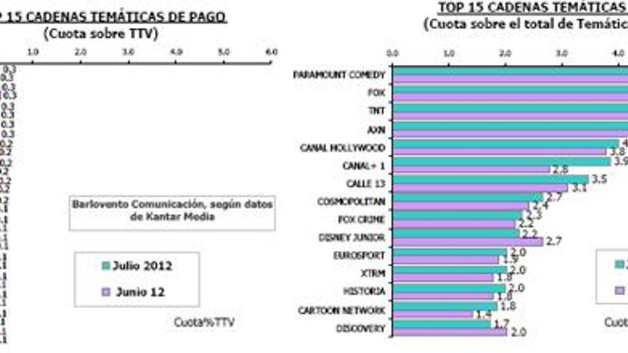 El conjunto de las Cadenas Temáticas de Pago (5,8%) suben dos décimas con respecto al mes