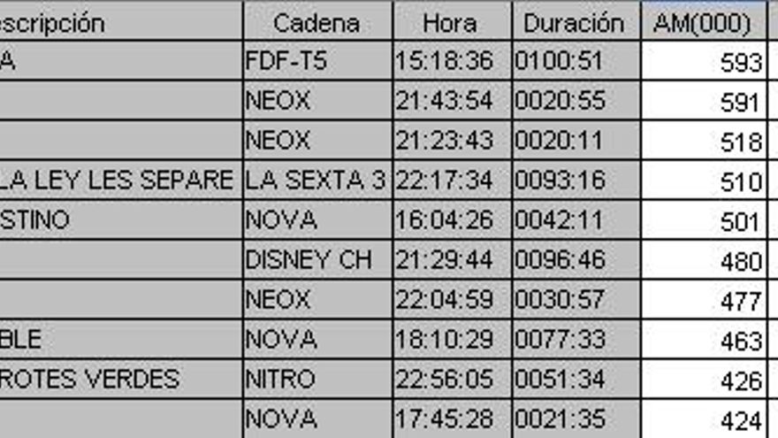 LOS 10 PROGRAMAS MÁS VISTOS DE LA TDT