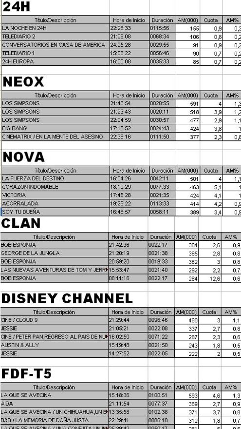 LOS 5 PROGRAMAS MÁS VISTOS EN CADA CADENA