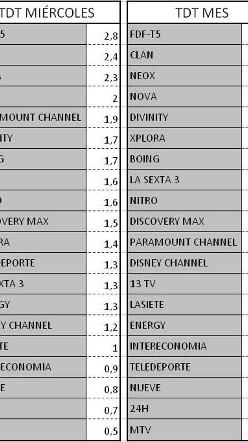 Los 10 programas más vistos en la TDT del miércoles 23 de octubre