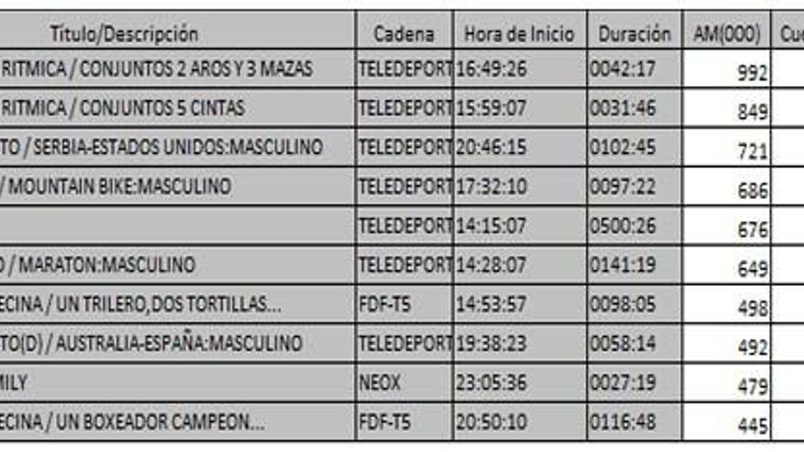 Teledeporte lidera la última jornada de los JJOO con la plata en gimnasia rítmica