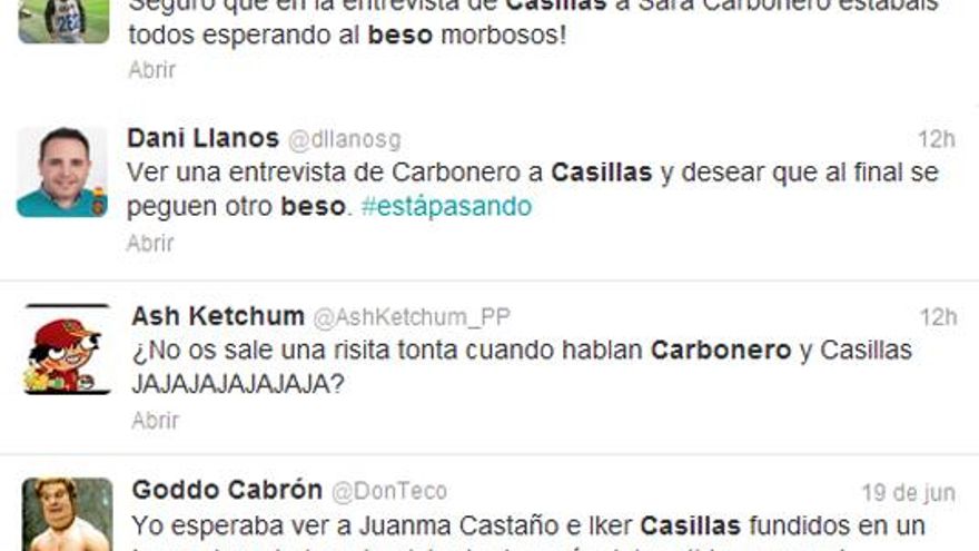 También hubo quien empleó con humor los 140 carácteres de esta red de microblogging, y cambiaron a los actores protagonistas de esta escena: “Yo esperaba ver a Juanma Castaño e Íker Casillas fundidos en un beso durante la entrevista de después del partido, ¡pero no!”.