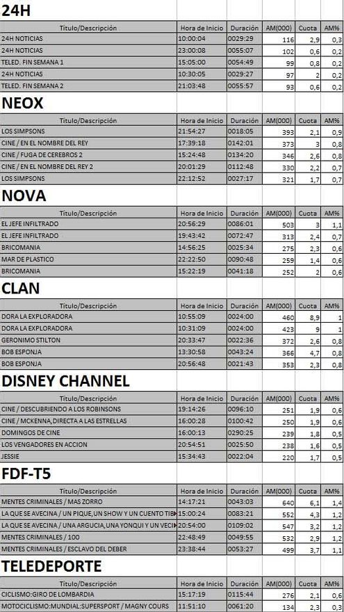 Audiencias TDT domingo 04/10/15