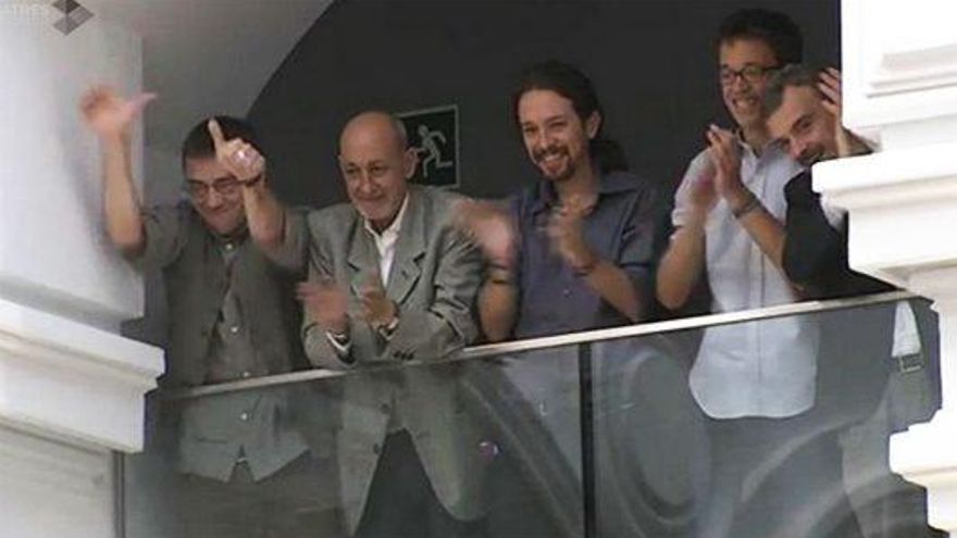 La imagen en TV: Pablo Iglesias y Errejón se ríen y aplauden los ataques de Aguirre