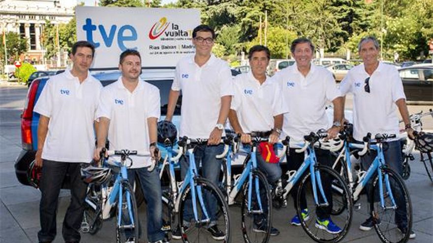 Televisión Española ha presentado la cobertura de la Vuelta 2013 en un acto al que han acudido el director adjunto de TVE, Alejandro Flórez; el director de Deportes, Jesús Álvarez; los comentaristas de la Vuelta, Carlos de Andrés y el exciclista Pedro Delgado; los reporteros Juan Carlos García y Josué Elena. Todos ellos se han subido a la bici para recorrer la distancia que separa la puerta del Sol de la Plaza de la Cibeles, donde les ha recibido la delegada de Familia, Servicios Sociales y Participación Ciudadana del Ayuntamiento, Lola Navarro.