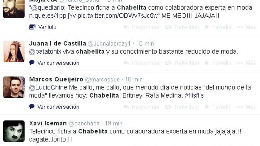 Es una de las noticias más llamativas en este arranque de temporada: Telecinco ficha a Chabelita Pantoja para presentar una sección propia de moda, belleza y estilo de vida en el programa Cazamariposas. Como era de esperar, las redes sociales se inundaron de comentarios, la mayoría de perplejidad, risa e incluso queja. Estos son algunos: