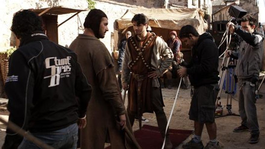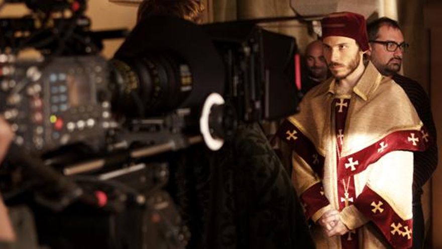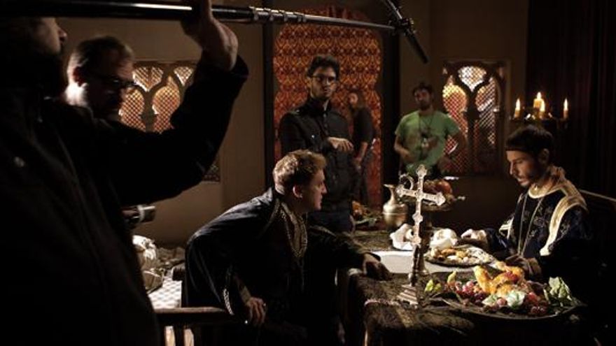 El conde de Miranda (Fernando Cayo) y el obispo Oliva (Rubén Ochandiano) presencian esta decisiva secuencia correspondiente al capítulo 9 -esta noche se emite el séptimo episodio-, que no se graba precisamente en un imponente palacio de la época, sino en un gigantesco y frío plató de 1.500 metros cuadrados en Fuenlabrada, a las afueras de Madrid.