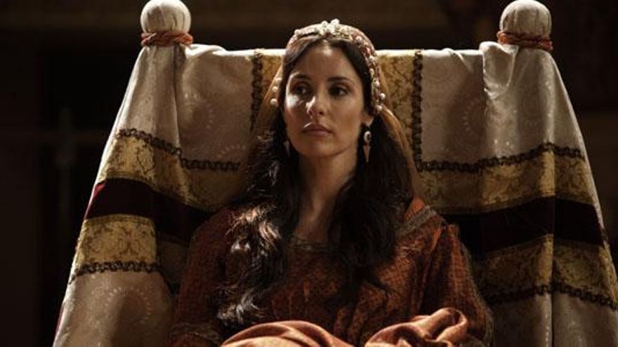 Patricia Vico adopta la pose de reina Violante. Avanza por el pasillo del palacio, se cruza con el conde de Miranda y el obispo Oliva, que la saludan con la mueca conspiradora que les caracteriza. La consorte de Alfonso X se encuentra al final de la estancia por la que camina con sus doncellas y el director de Toledo manda 'cortar'.