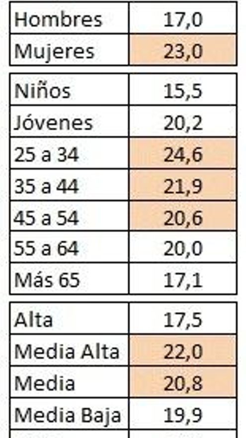 Mujeres de 25 a 54 años, de clase media-alta