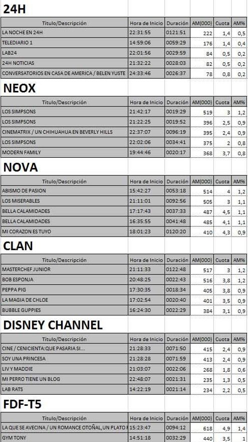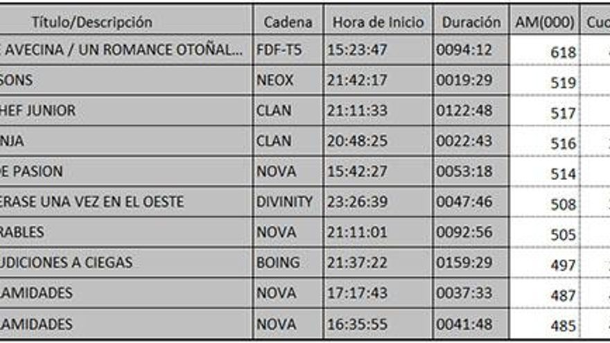Top 5 programas por cadenas del viernes en la TDT