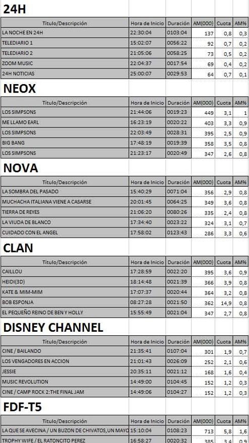 Top 5 programas por cadenas del viernes en la TDT