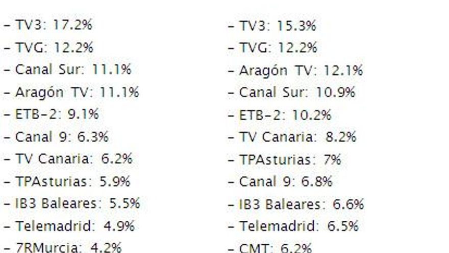 Audiencias autonómicas jueves 15 de marzo