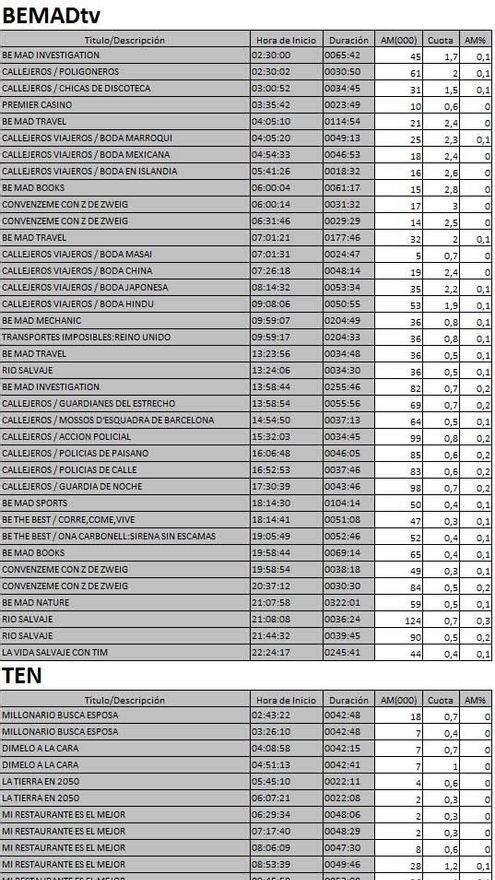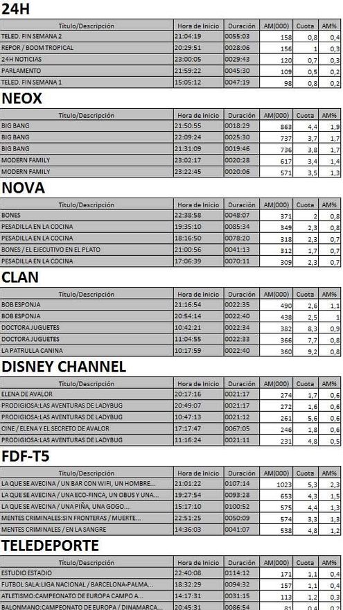 Audiencias completas de las nuevas cadenas en la TDT