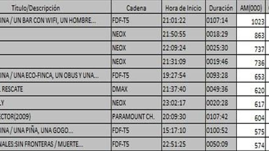 Los 10 programas más vistos del domingo en la TDT
