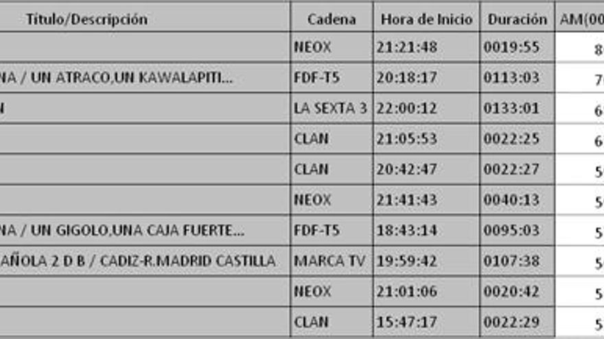 Los 10 programas más vistos del día en TDT