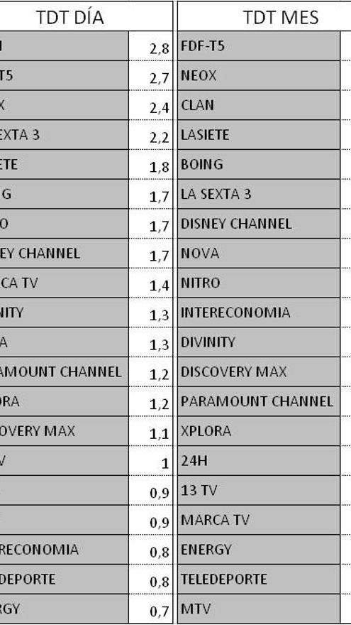 Audiencias TDT y Forta