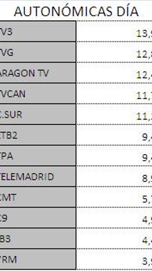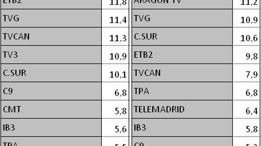 Audiencias autonómicas sábado 19 de mayo