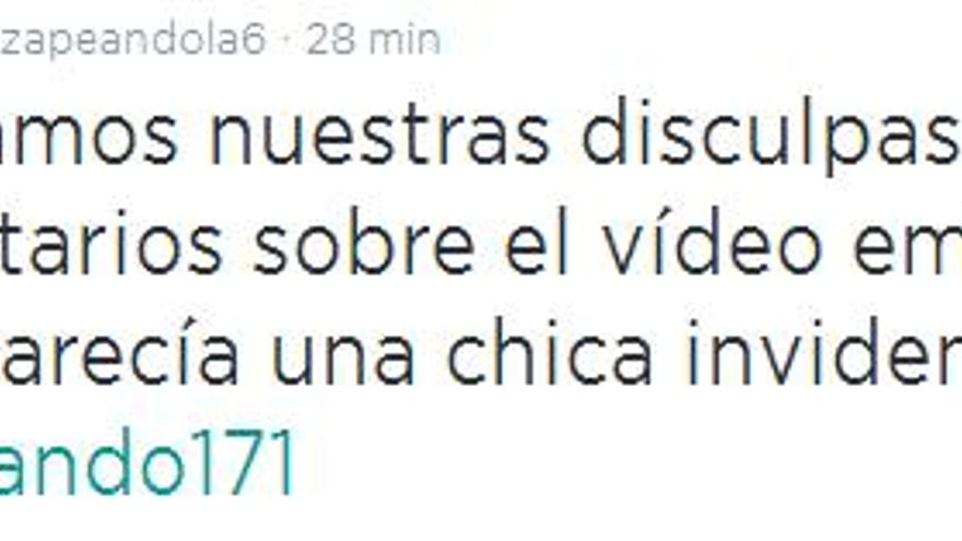 A través de las redes sociales también reconocieron su error: “Reiteramos nuestras disculpas por los comentarios sobre el vídeo emitido en el que aparecía una chica invidente”