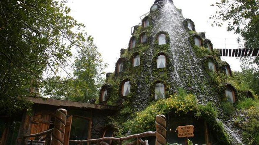 En medio de la Selva Patagónica del sur de Chile se emplaza Huilo-Huilo Montaña Mágica Lodge, un alojamiento ecológico en forma de volcán. Los muebles están hechos de troncos de árboles, mimetizándose así con la naturaleza que lo rodea. Cuenta con un spa y ofrecen excursiones y hasta una guardería para cuidar de los más pequeños. Se trata de un verdadero paraíso para los amantes de la naturaleza.