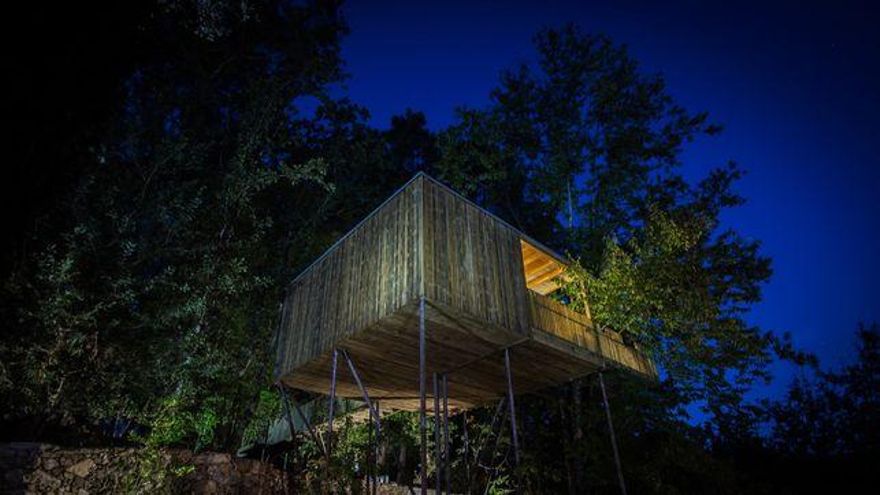 El encanto de este alojamiento reside en la originalidad de su construcción y ubicación. Conformado, como su propio nombre indica, por auténticas cabañas de madera, se encuentra situado en plena naturaleza, suspendido a seis metros sobre el suelo. Outes, en la comarca gallega de Noia, es el municipio que alberga este pintoresco hospedaje que cuenta con un rico entorno paisajístico.