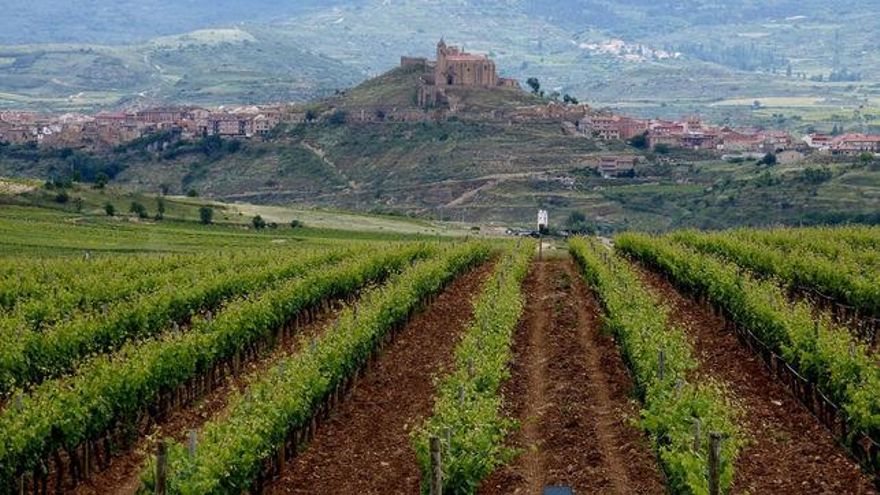Viñedos de las Bodegas Muga, con vista de Haro al fondo.