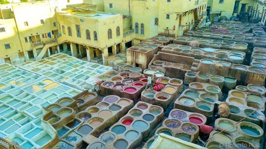 Seguro que es una de las imágenes que más veces habrás visto de Fez, y es que no se puede entender Fez sin sus curtidurías. La curtiduría Chouwara es una de las más conocidas, aunque hay otras menores. Desde el mirador de alguna tienda cercana podrás contemplar desde lo alto el proceso de curtido y tintado de las pieles, la materia prima que después llena las tiendas en forma de bolsos, mochilas, maletas y tantas otras cosas. La cal viva y el guano de ave empleados en el primer proceso hacen que el olor sea realmente intenso, por lo que lo mejor es aceptar una ramita de menta para aliviar tu nariz.