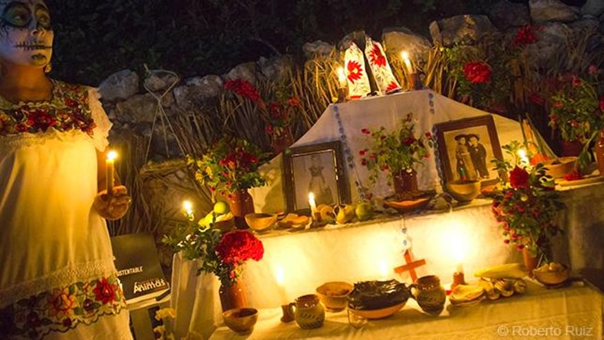 Del 31 de octubre al 2 de noviembre las ánimas de los difuntos reciben permiso para visitar a sus familiares, y éstos las están esperando con los brazos abiertos y una acogida por todo lo alto. Para recibirlas las familias montan en sus casas pequeños altares en los que no pueden faltan ciertos elementos que recuerdan a la persona querida. En ellos se coloca una cruz, pues aunque es una tradición maya el sincretismo se volvió inevitable siglos atrás, velas, flores, incienso que se encarga de llevar el olor de la comida hasta los difuntos, un vaso de agua para la sed y además una fotografía de la persona querida.