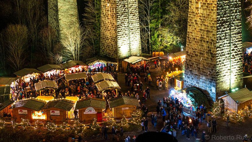 Mercados de Navidad hay muchos, pero pocos como el que se celebra en Ravennaschlucht, a media hora de Friburgo, en la Selva Negra alemana. Su ubicación en medio del bosque lo hace distinto a todos los demás, y más aún al encontrarse en un entorno histórico y bajo un enorme viaducto especialmente iluminado que hace de marco para conseguir una imagen de postal.