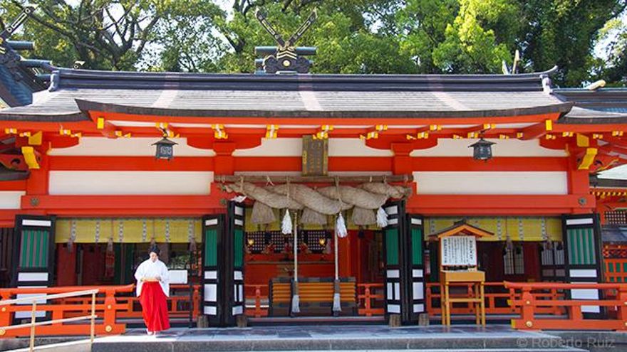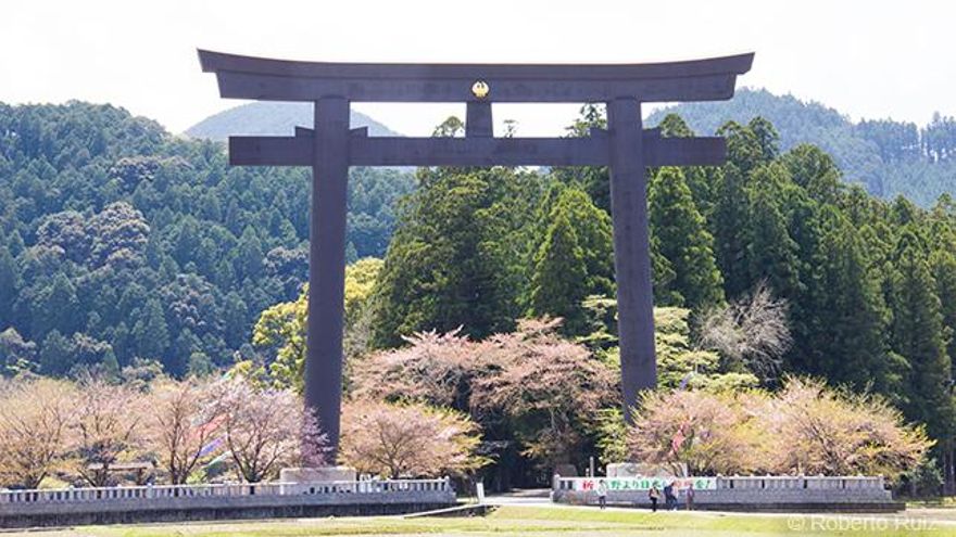 Para llegar a él hemos de subir unas largas escaleras rodeadas de grandes y viejos cedros. Es el santuario principal de otros 3.000 repartidos por todo Japón y pertenece a las primeras etapas del sintoísmo. Aquí además se encuentra el Otorii, el arco torii más grande del mundo, una puerta tradicional que da acceso a un área sagrada de 33,9 metros de alto, 42 metros de ancho y un peso de 172 toneladas.