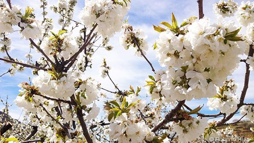 La primavera hace que el Valle del Jerte se cubra de blanco, sus cerezos rompan a florecer en cuanto se templa la temperatura y las flores blancas vistan sus laderas con lo que parecen pequeñas nubes de algodón, cubriéndolo todo hasta donde alcanza la vista.