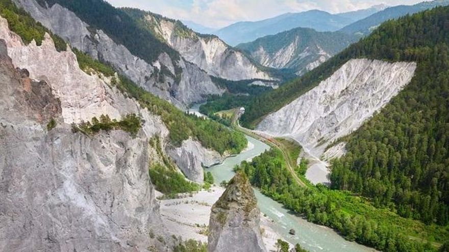 Un tren panorámico para quienes no tienen prisa al viajar y disfrutan de los paisajes alpinos. El Glacier Express recorre durante ocho horas la distancia que separa Zermat y St. Moritz, un trayecto de 291 km en el que se atraviesan 91 túneles y se cruzan 291 puentes.
